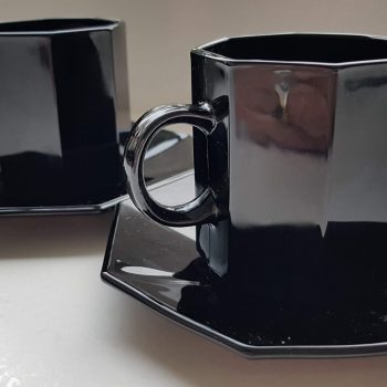 Arcoroc France. Espresso kop en schotel zwart. Geperst glas. Per stuk.