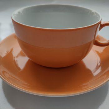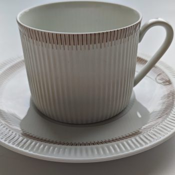 Heel elegant thee kopje en schotel. Schotel paars/ wit. Kopje wit met fijn paars binnenrandje. Kortom weer Arzberg Top.