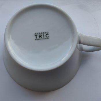 Heel elegant thee kopje en schotel. Schotel paars/ wit. Kopje wit met fijn paars binnenrandje. Kortom weer Arzberg Top.
