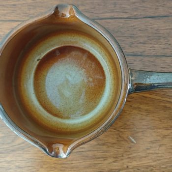• Kippenzit Vintage.  Bruin aardewerk met 2 bewerkte handvaten.