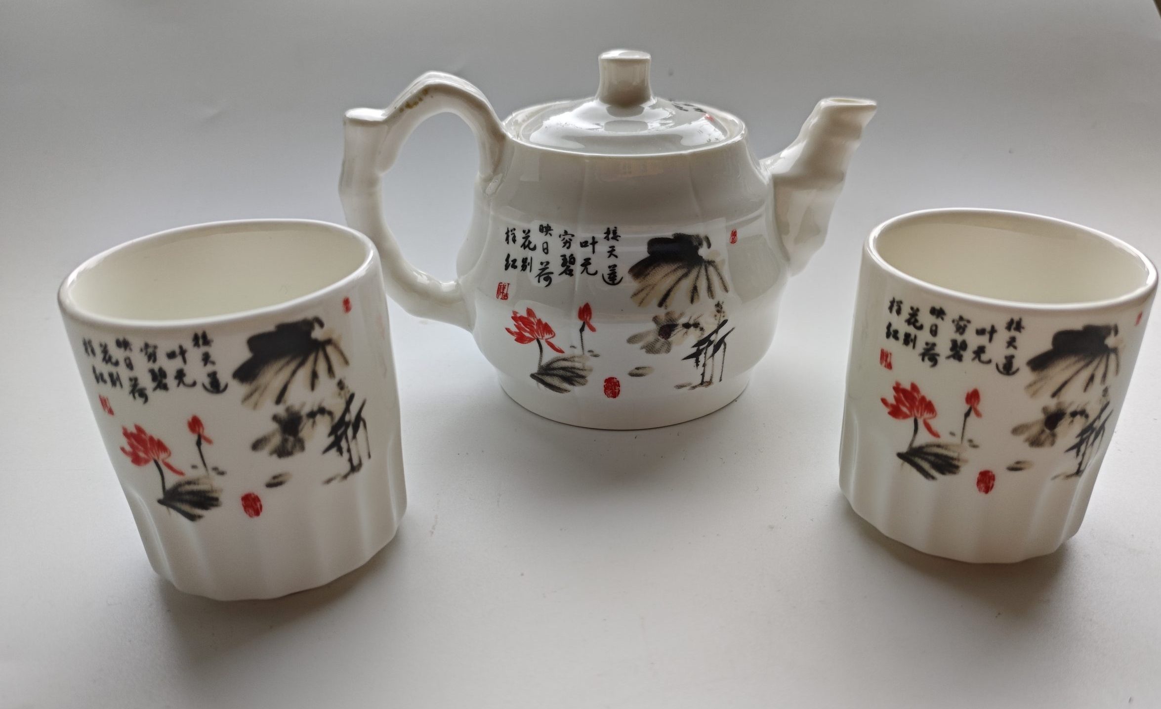 Potje + 2 kommetjes. Sfeervol.
