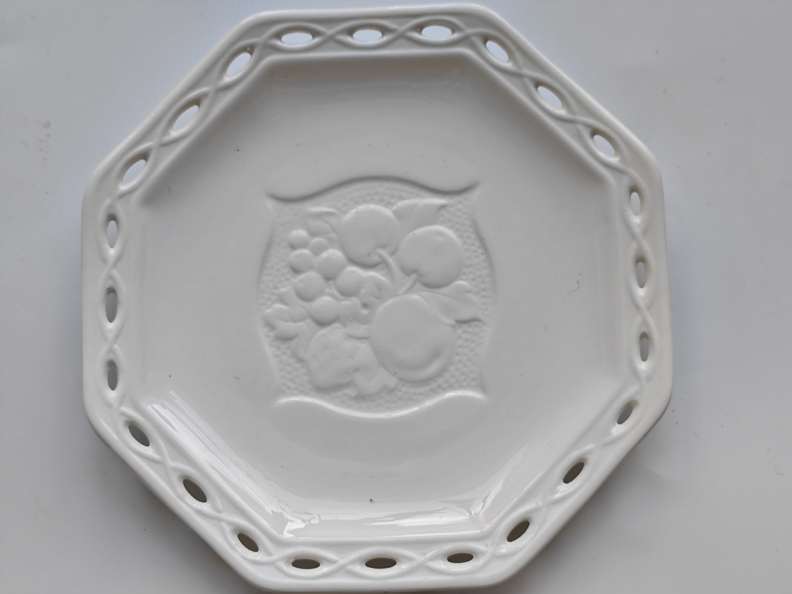 Mooi weer een blikvanger, deze gebaksbordje met opengewerkte rand..