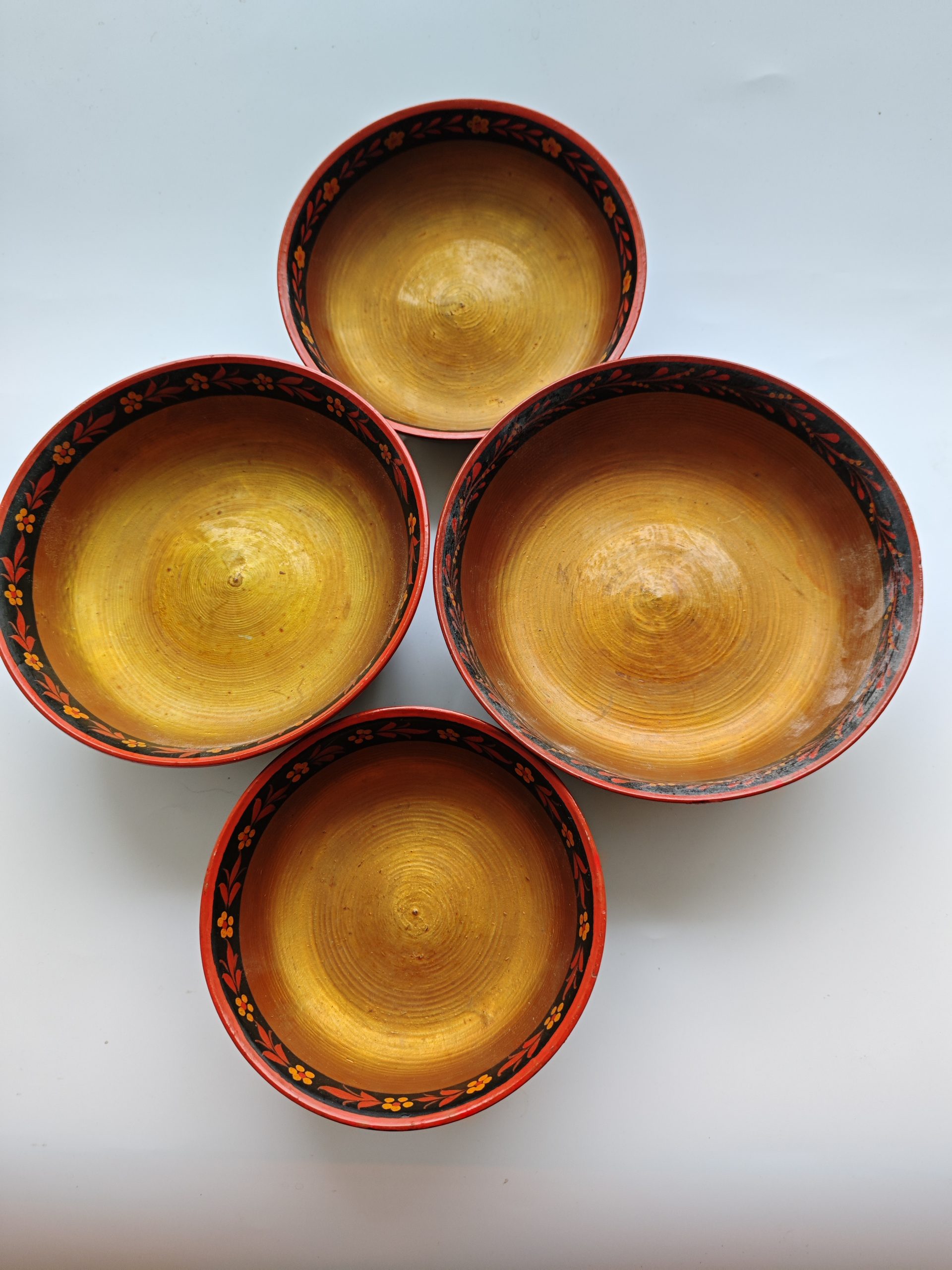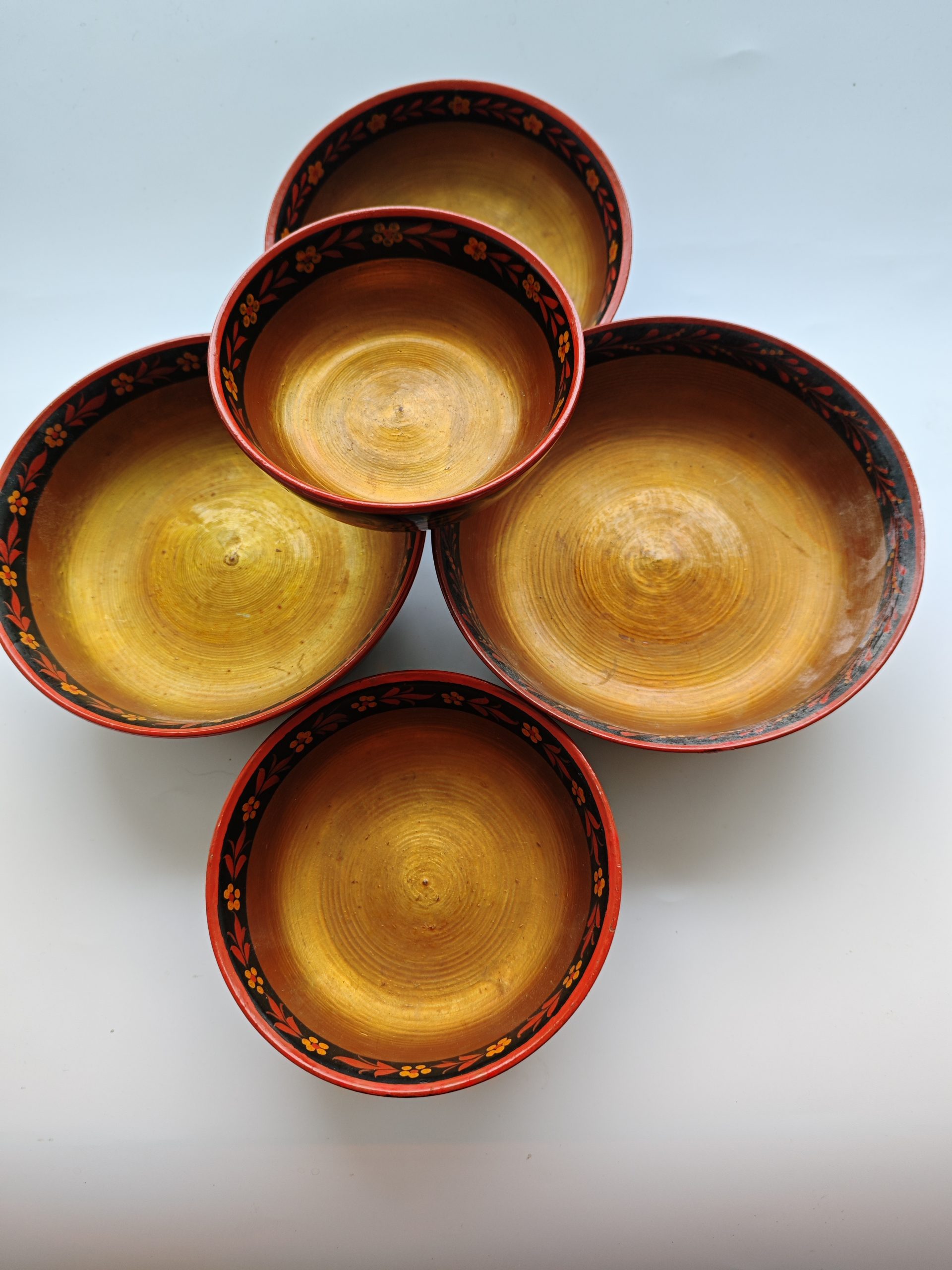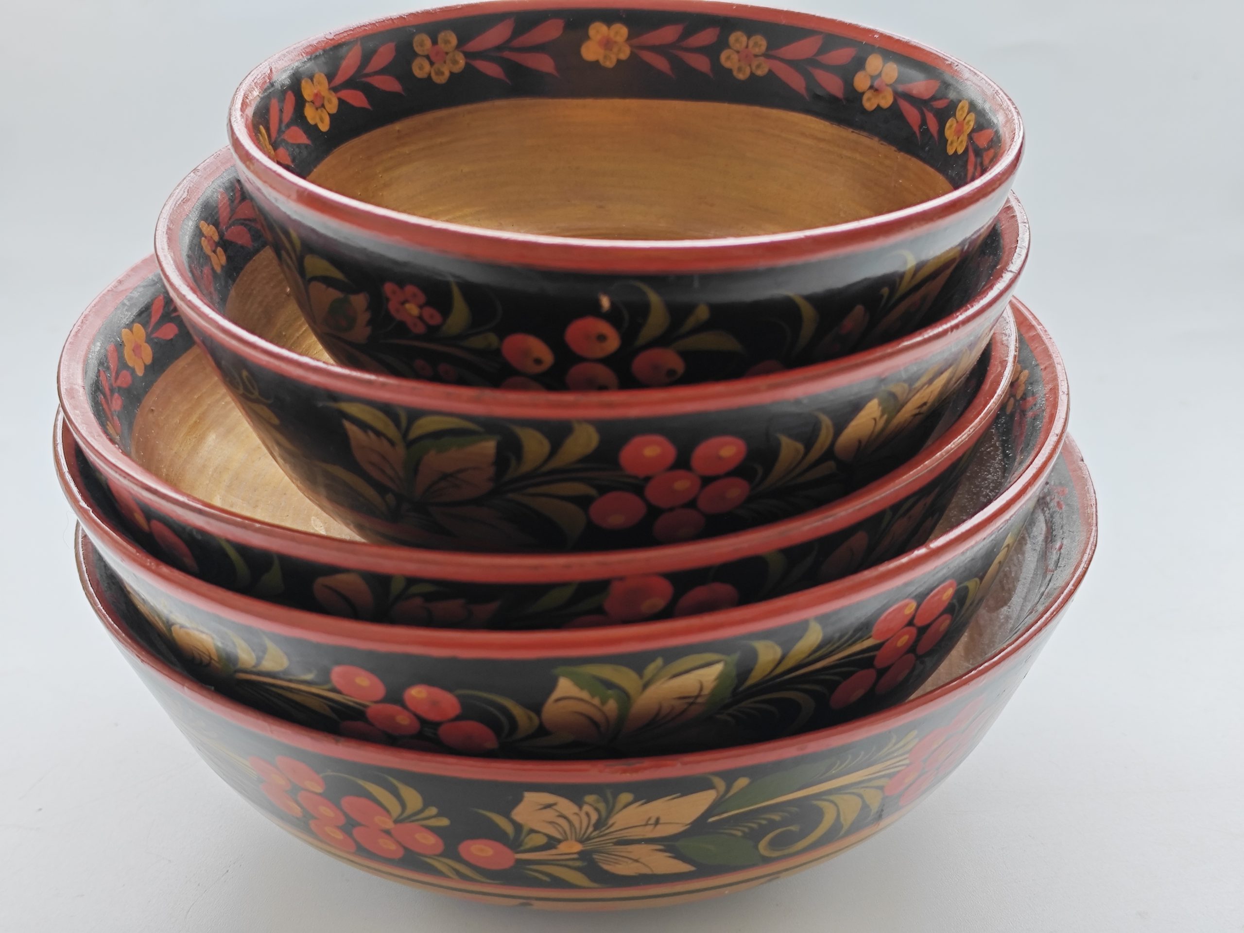 Khokhloma Folk Painting. Made in Russia. Schaaltjes. Houtwerk. Set van 5