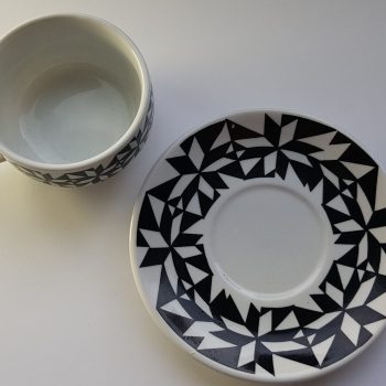 Het schoteltje ook apart door de opengewerkte rand. Al met al heel apart.