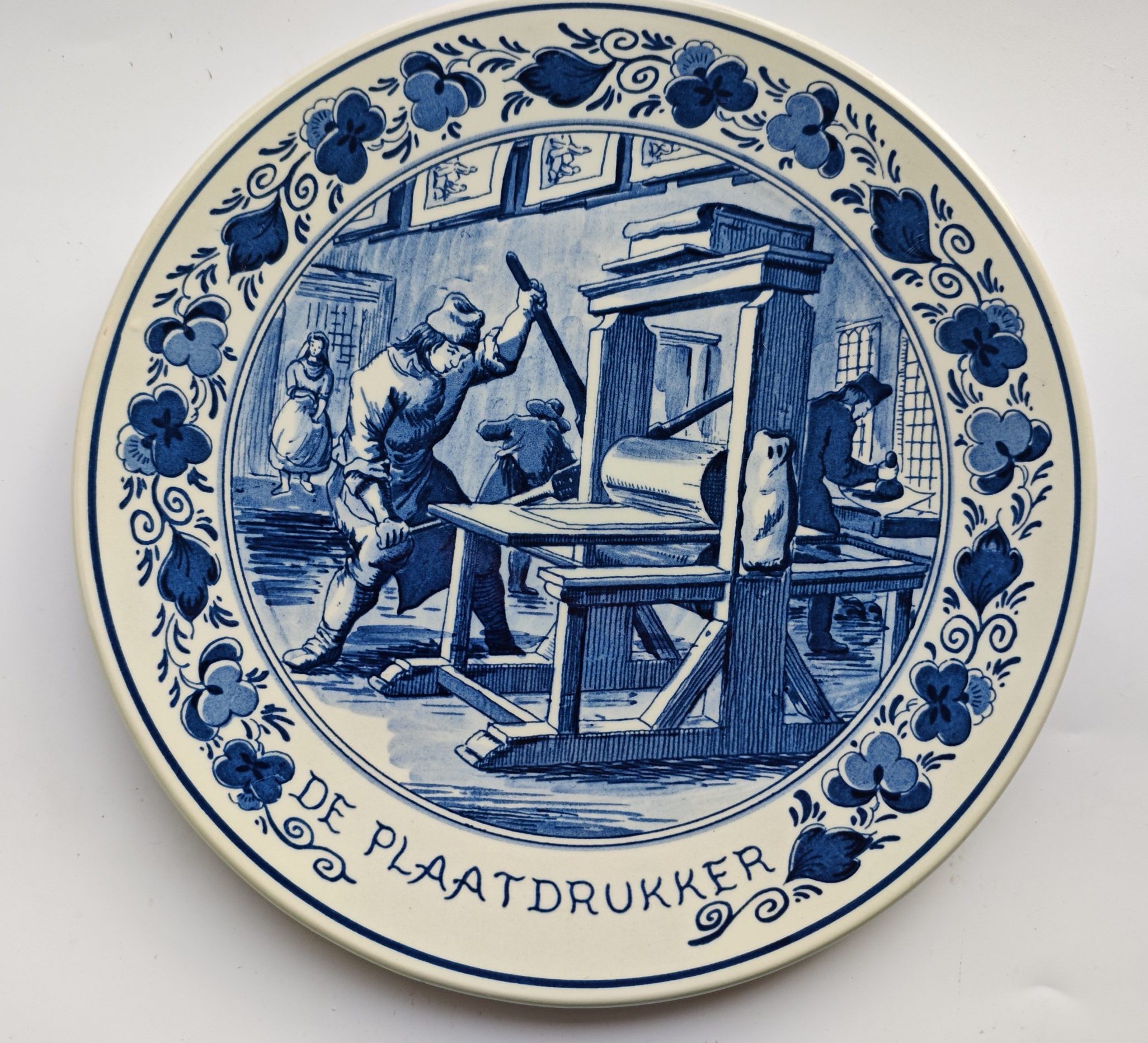 Royal Goedewaagen, “Blue Delft”. Handwork Holland. Wandbord Beroepen. De Plaatdrukker.